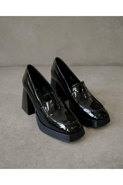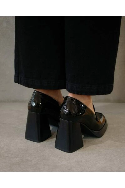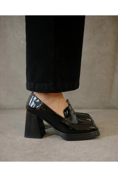 Een elegante en allround functionele loafer met een glanzende afwerking en een vormgevende hak.